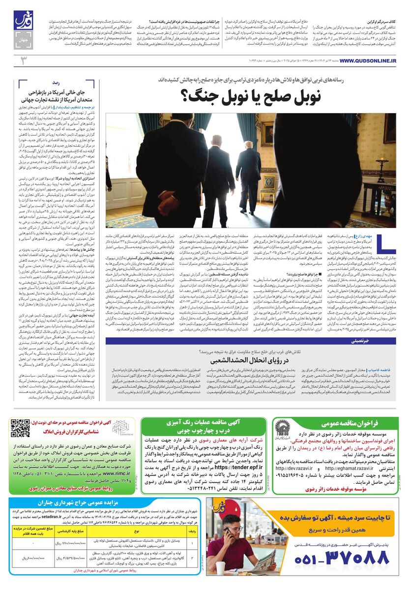 10693 - روزنامه قدس شماره ۱۰۶۹۳ - ۱۴۰۴-۰۴-۲۴