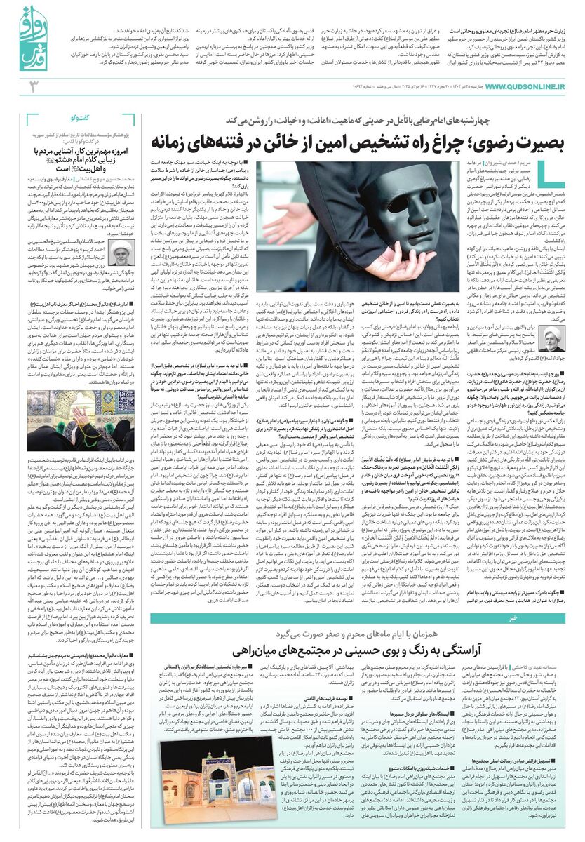 بصیرت رضوی؛ چراغ راه تشخیص امین از خائن در فتنههای زمانه