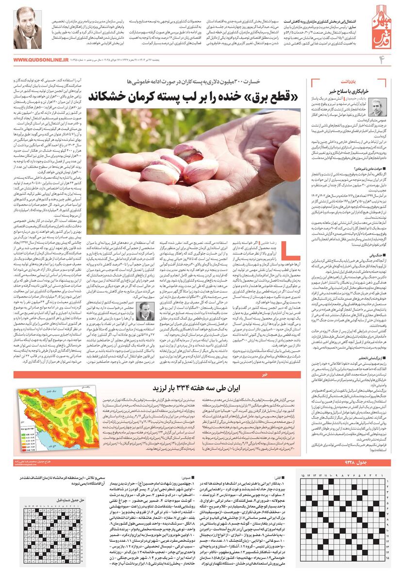 10695 - روزنامه قدس شماره ۱۰۶۹۵ - ۱۴۰۴-۰۴-۲۶