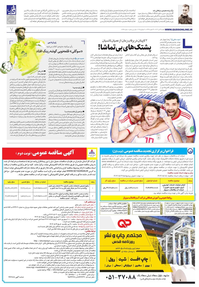 10697 - روزنامه قدس شماره ۱۰۶۹۷ - ۱۴۰۴-۰۴-۲۹