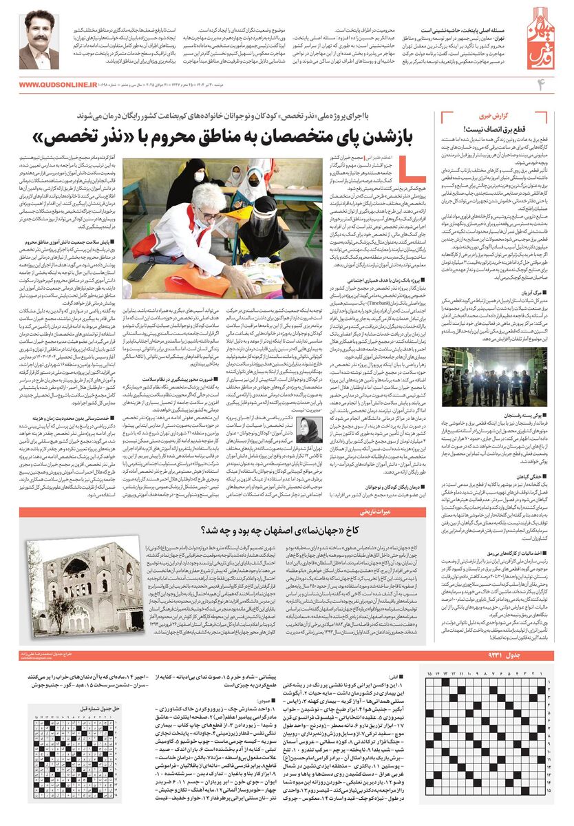 10698 - روزنامه قدس شماره ۱۰۶۹۸ - ۱۴۰۴-۰۴-۳۰