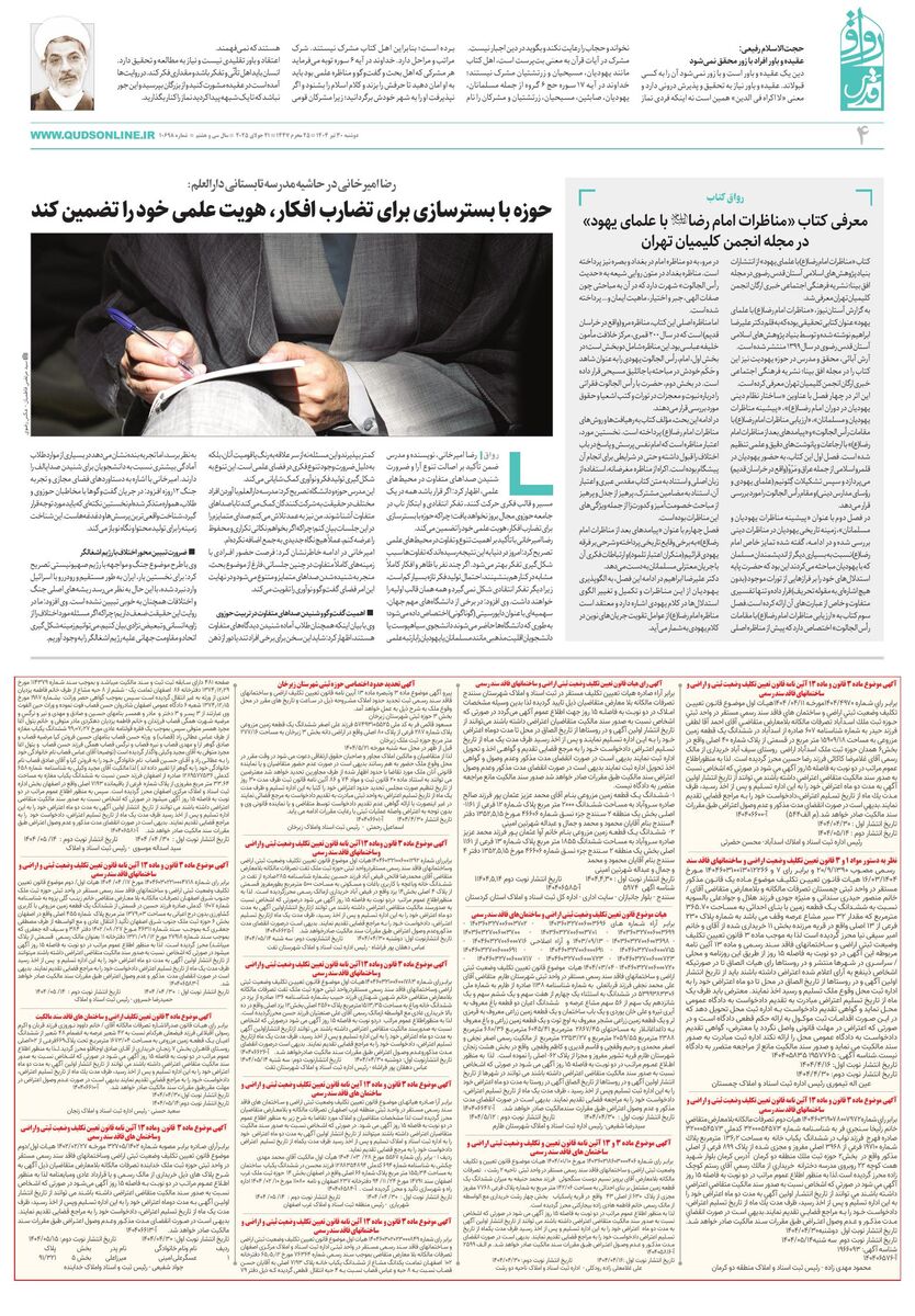 10698 - روزنامه قدس شماره ۱۰۶۹۸ - ۱۴۰۴-۰۴-۳۰