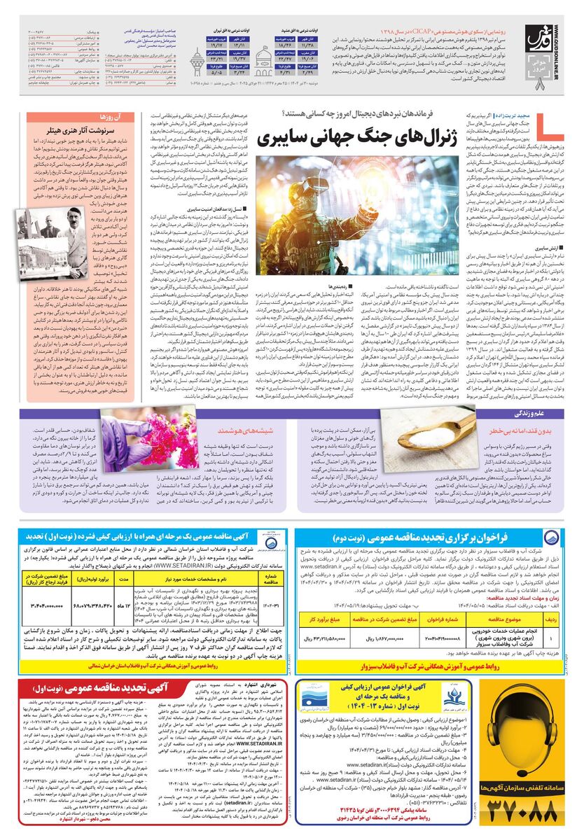 10698 - روزنامه قدس شماره ۱۰۶۹۸ - ۱۴۰۴-۰۴-۳۰