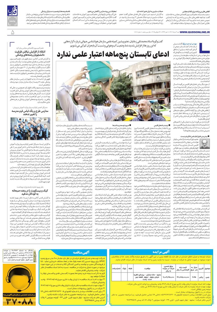 10701 - روزنامه قدس شماره ۱۰۷۰۱ - ۱۴۰۴-۰۵-۰۴