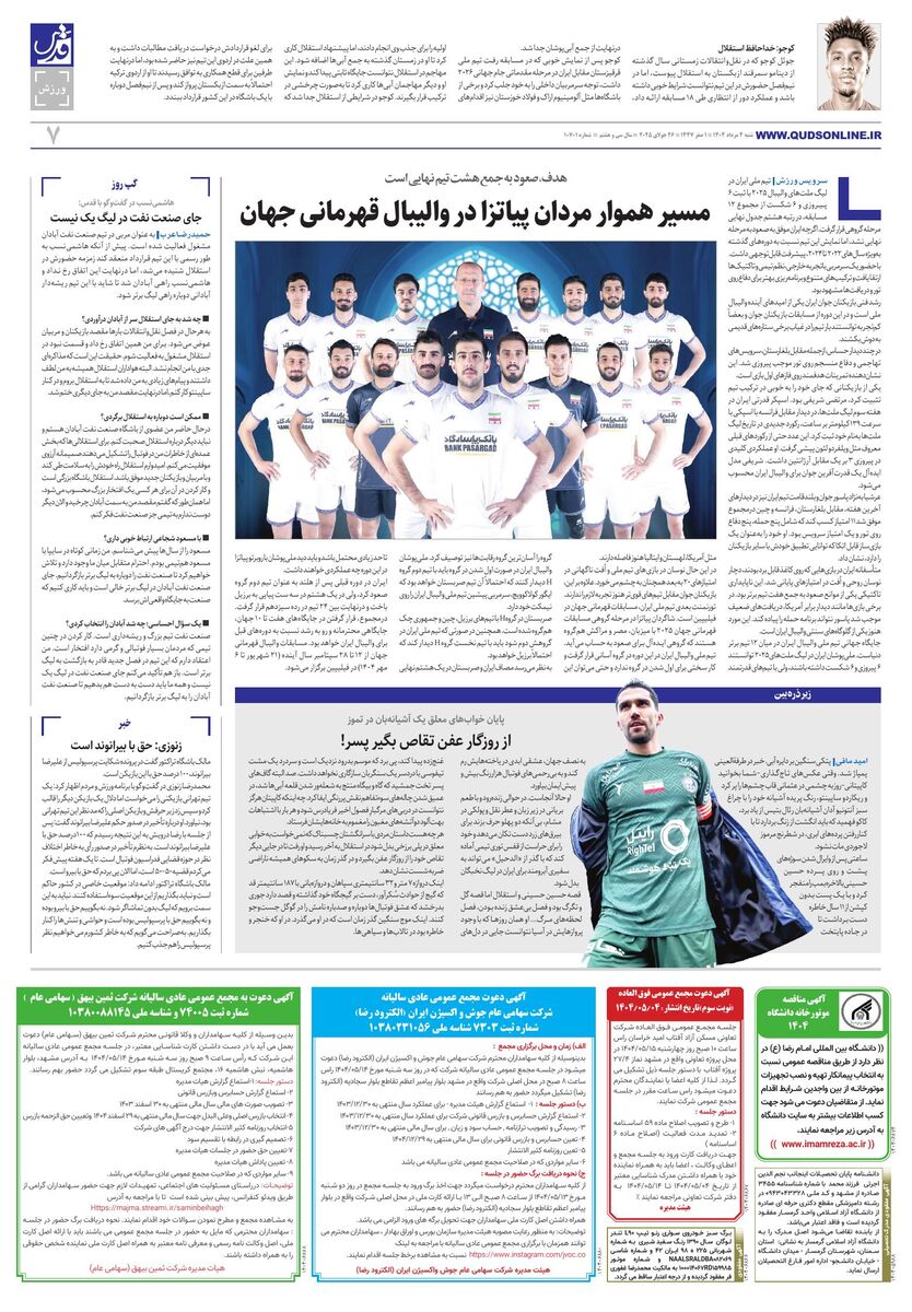 10701 - روزنامه قدس شماره ۱۰۷۰۱ - ۱۴۰۴-۰۵-۰۴
