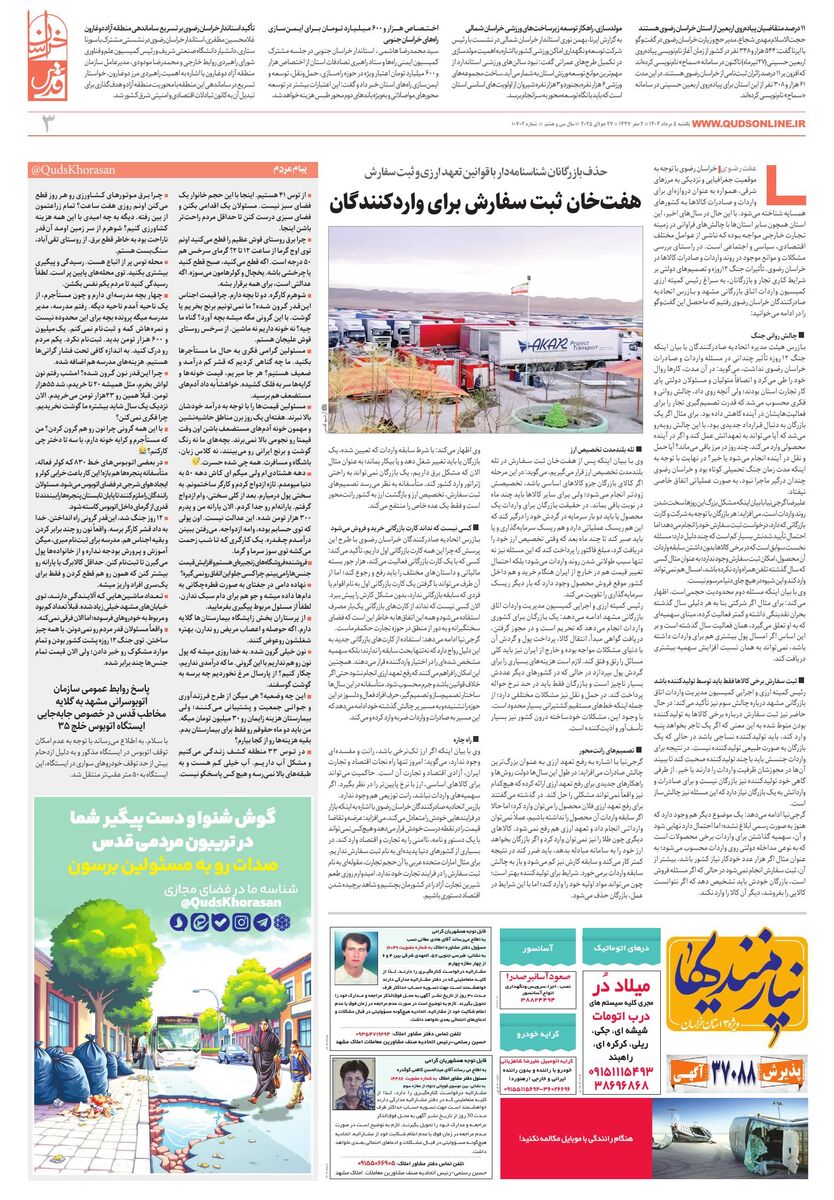 10702 - روزنامه قدس شماره ۱۰۷۰۲ - ۱۴۰۴-۰۵-۰۵