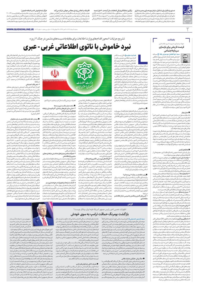 10704 - روزنامه قدس شماره ۱۰۷۰۴ - ۱۴۰۴-۰۵-۰۷