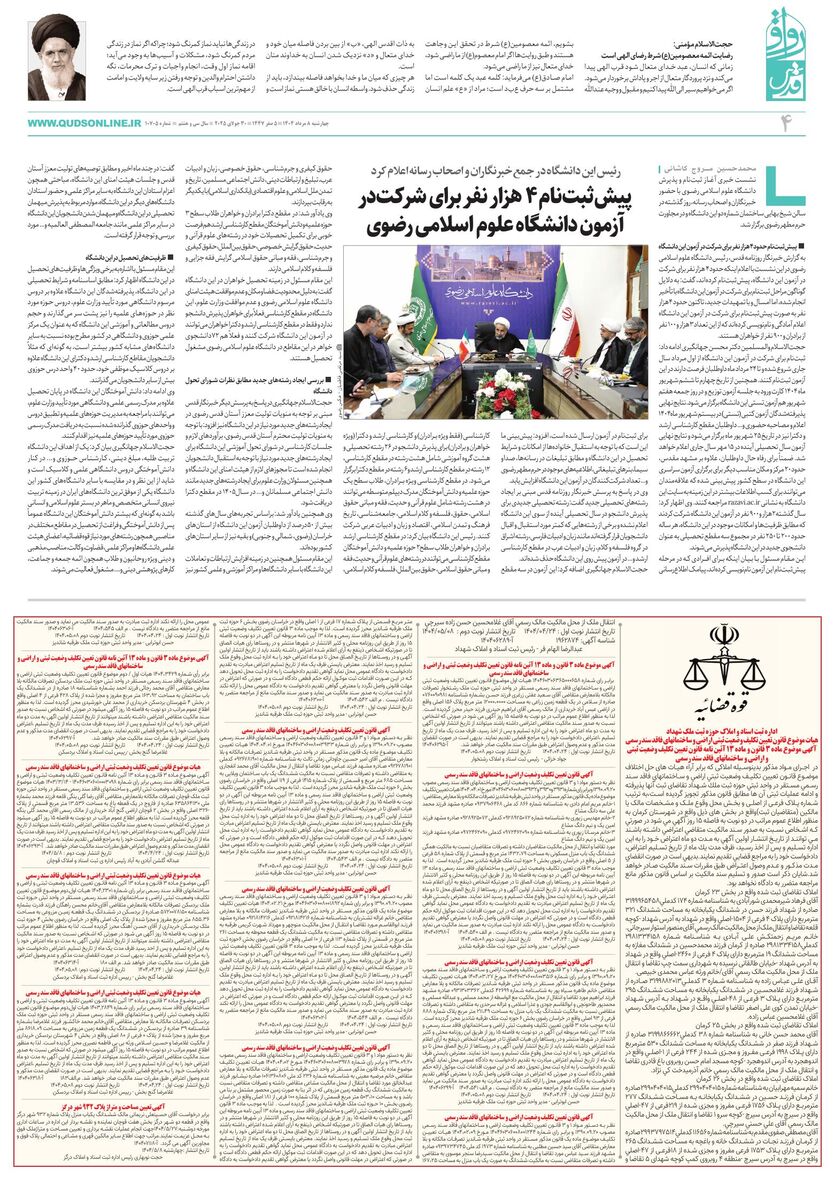 10705 - روزنامه قدس شماره ۱۰۷۰۵ - ۱۴۰۴-۰۵-۰۸