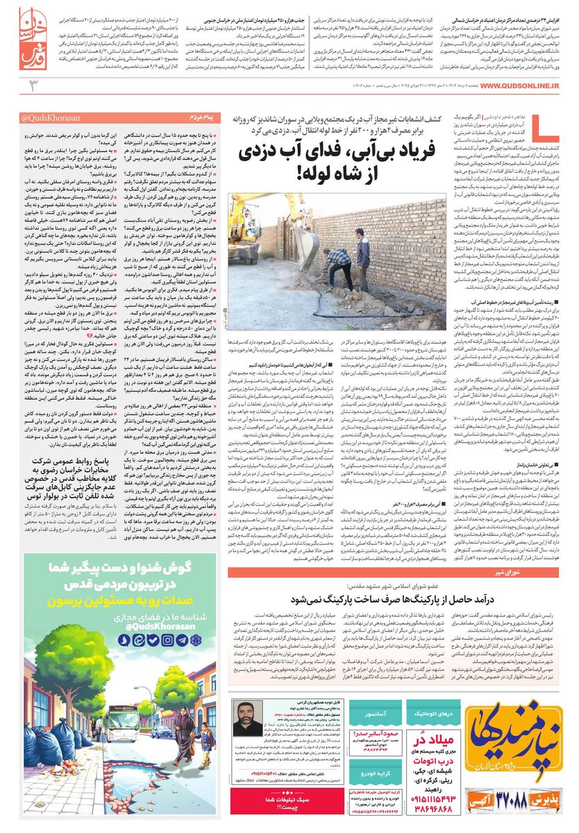 10706 - روزنامه قدس شماره ۱۰۷۰۶ - ۱۴۰۴-۰۵-۰۹