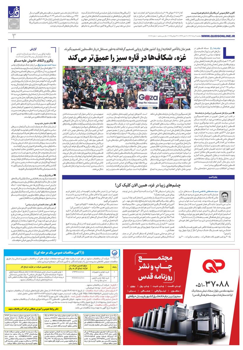 10706 - روزنامه قدس شماره ۱۰۷۰۶ - ۱۴۰۴-۰۵-۰۹