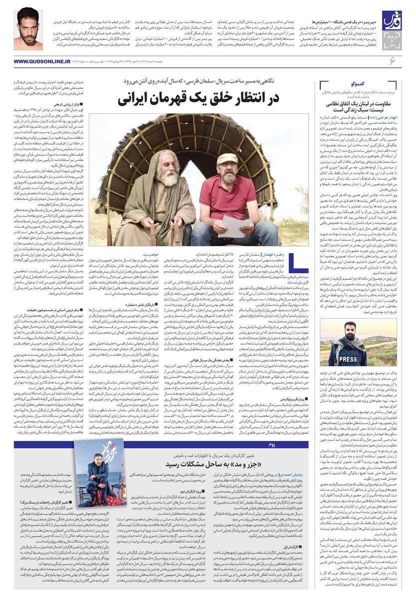 10706 - روزنامه قدس شماره ۱۰۷۰۶ - ۱۴۰۴-۰۵-۰۹