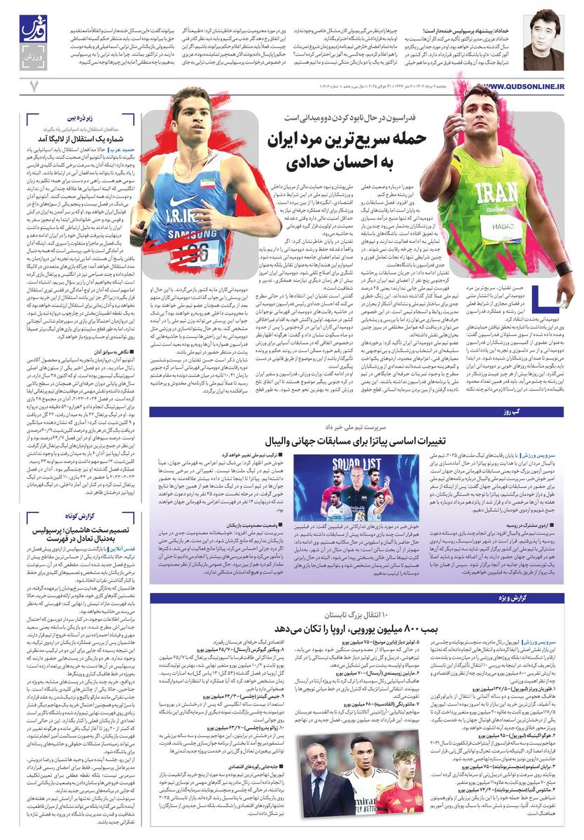 10706 - روزنامه قدس شماره ۱۰۷۰۶ - ۱۴۰۴-۰۵-۰۹