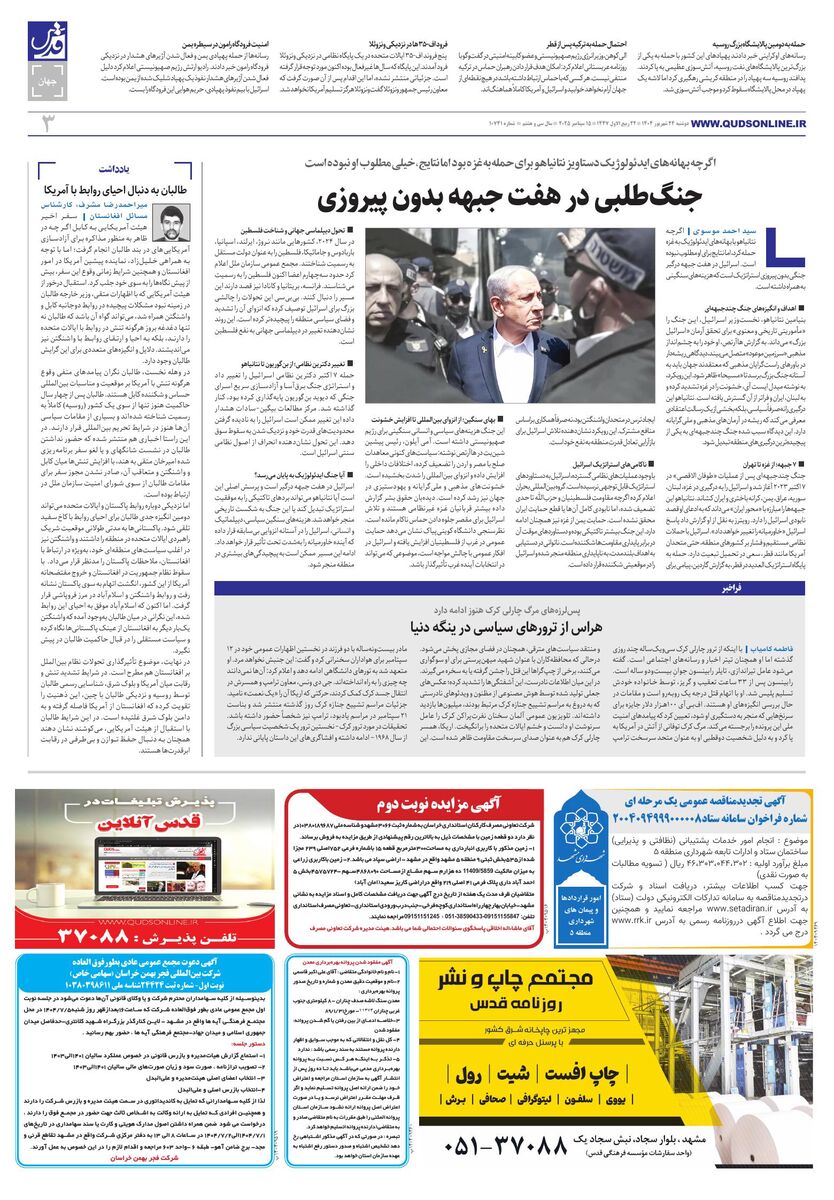 10741 - روزنامه قدس شماره ۱۰۷۴۱ - ۱۴۰۴-۰۶-۲۴