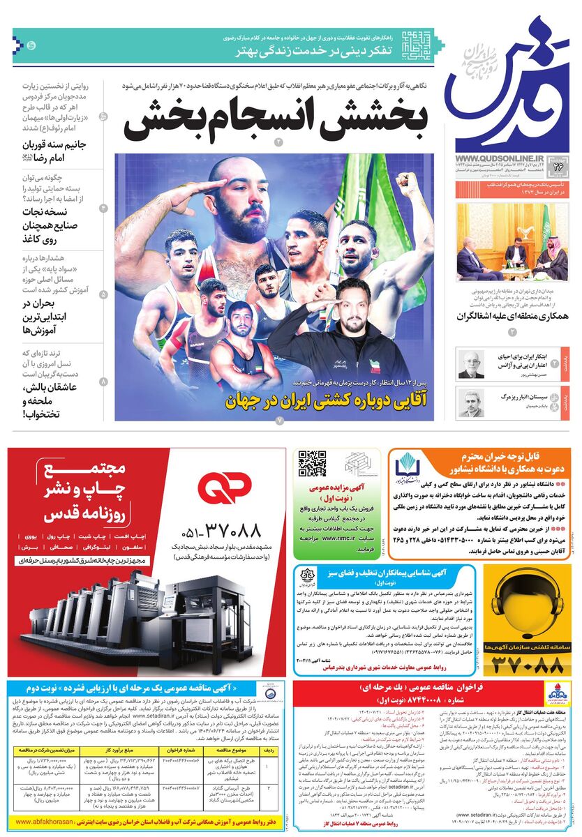10743 - روزنامه قدس شماره ۱۰۷۴۳ - ۱۴۰۴-۰۶-۲۶