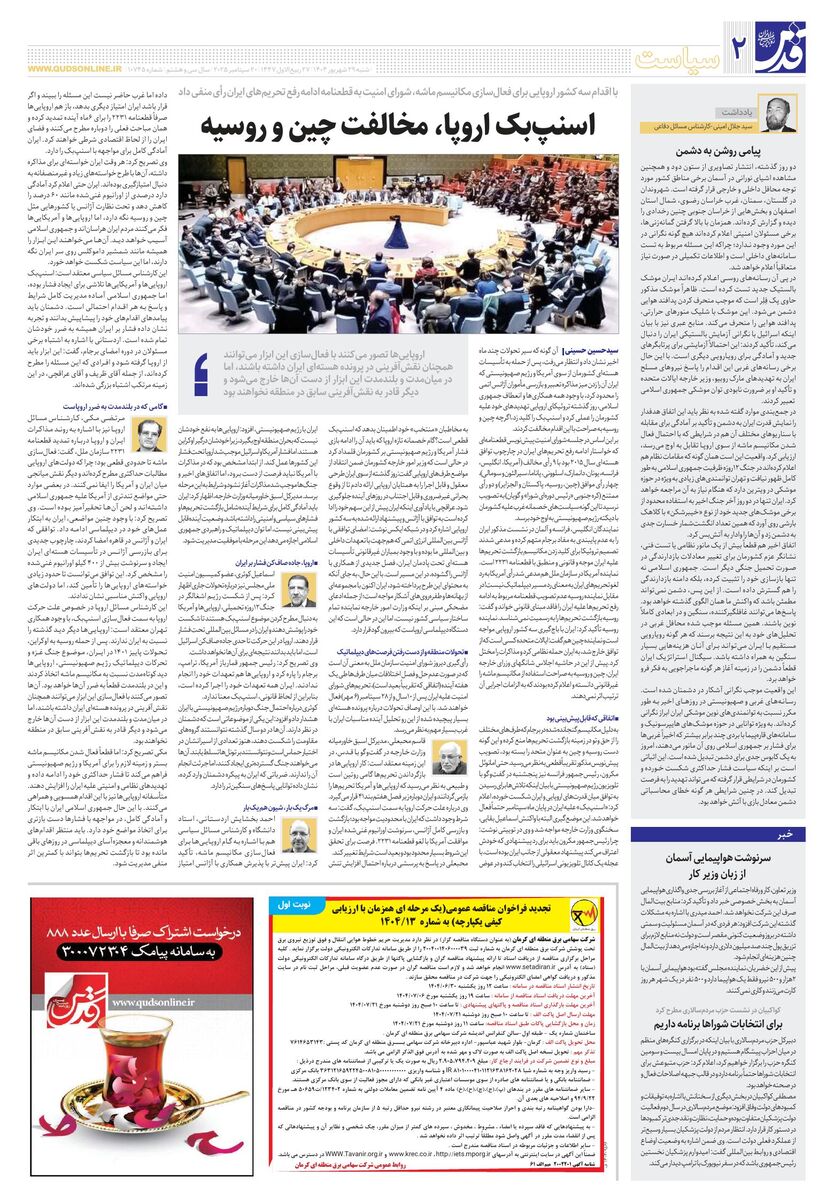 10745 - روزنامه قدس شماره ۱۰۷۴۵ - ۱۴۰۴-۰۶-۲۹