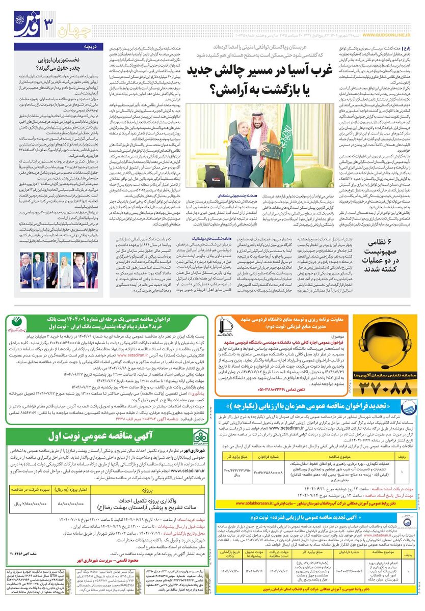 10745 - روزنامه قدس شماره ۱۰۷۴۵ - ۱۴۰۴-۰۶-۲۹