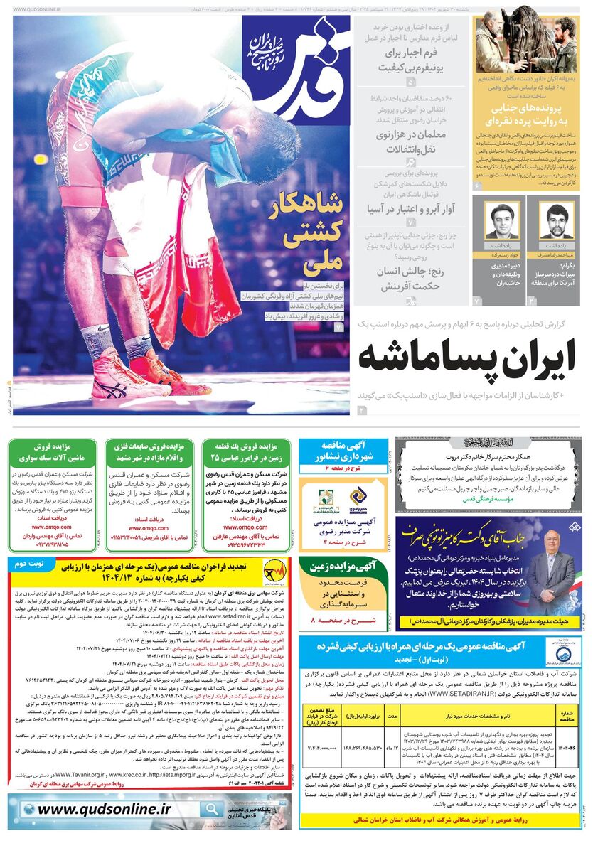 10746 - روزنامه قدس شماره ۱۰۷۴۶ - ۱۴۰۴-۰۶-۳۰