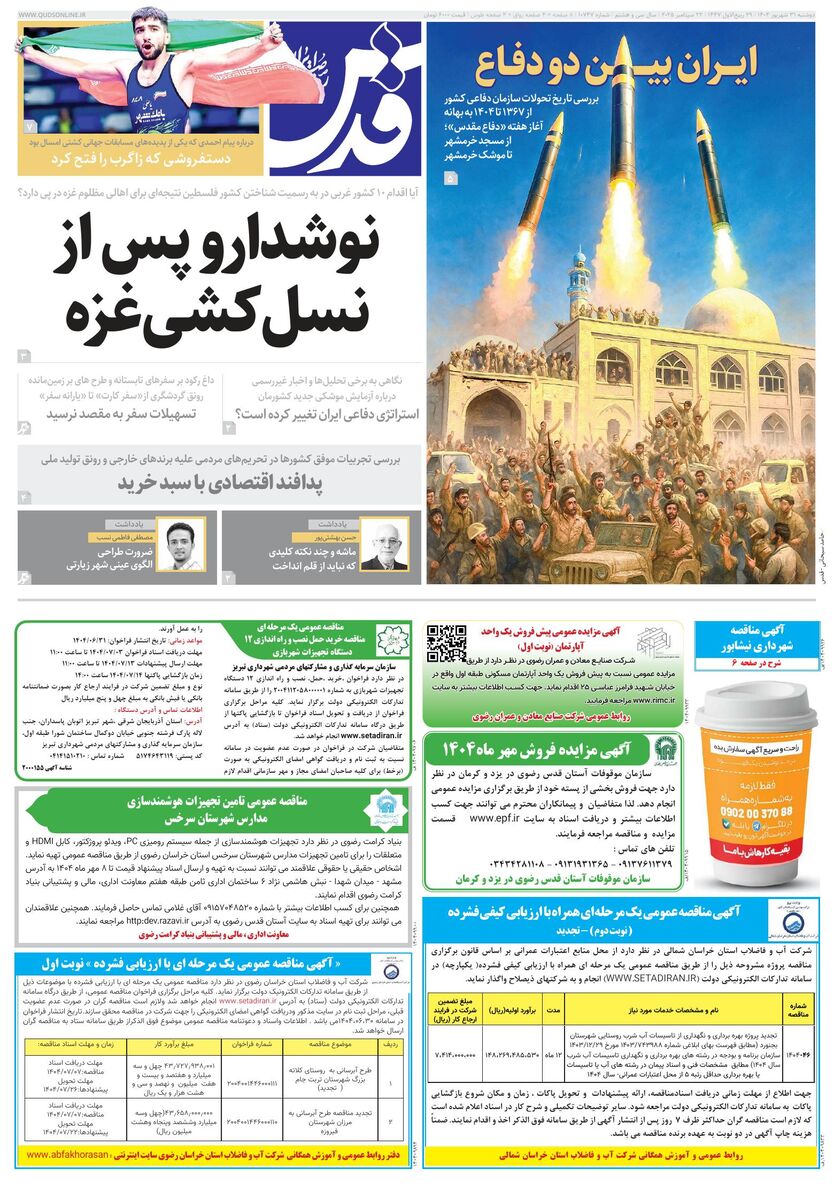 10747 - روزنامه قدس شماره ۱۰۷۴۷ - ۱۴۰۴-۰۶-۳۱