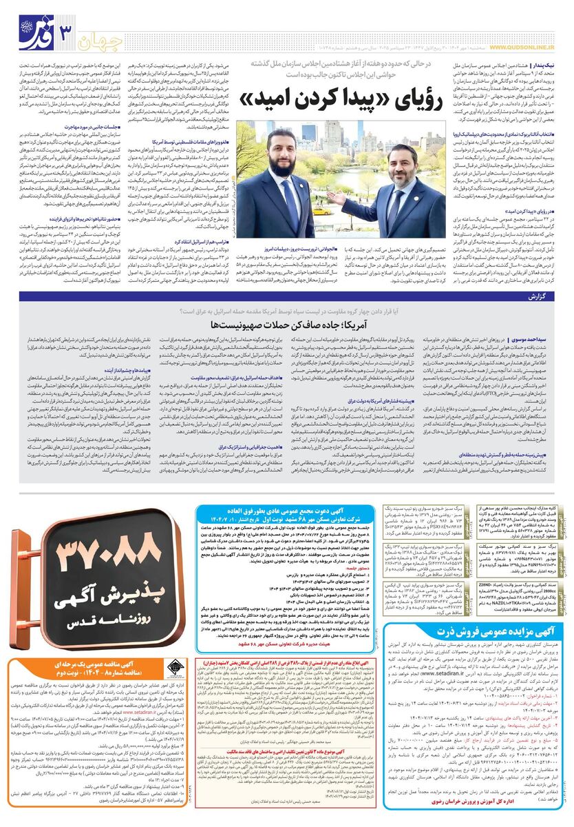 10748 - روزنامه قدس شماره ۱۰۷۴۸ - ۱۴۰۴-۰۷-۰۱