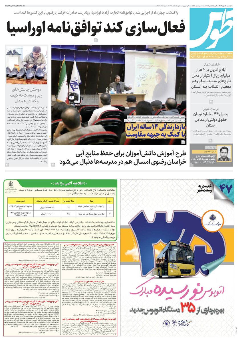 10750 - روزنامه قدس شماره ۱۰۷۵۰ - ۱۴۰۴-۰۷-۰۳
