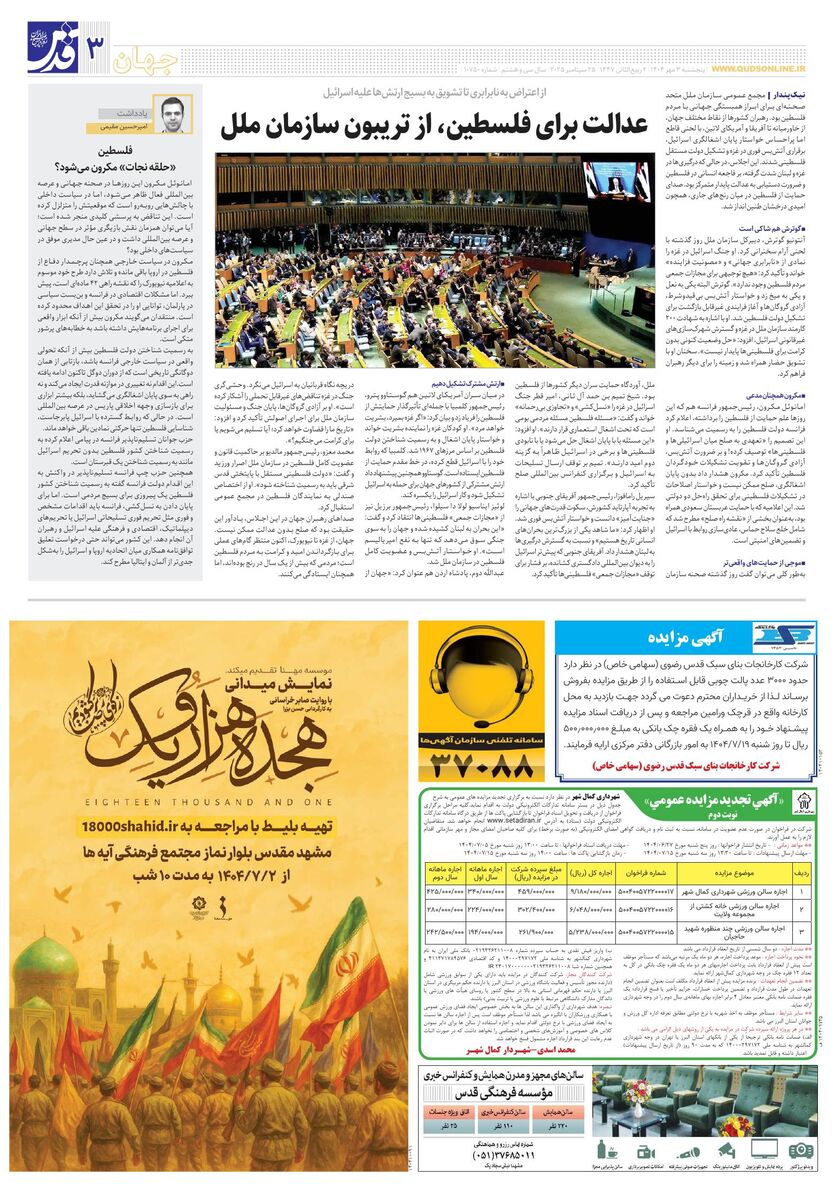 10750 - روزنامه قدس شماره ۱۰۷۵۰ - ۱۴۰۴-۰۷-۰۳