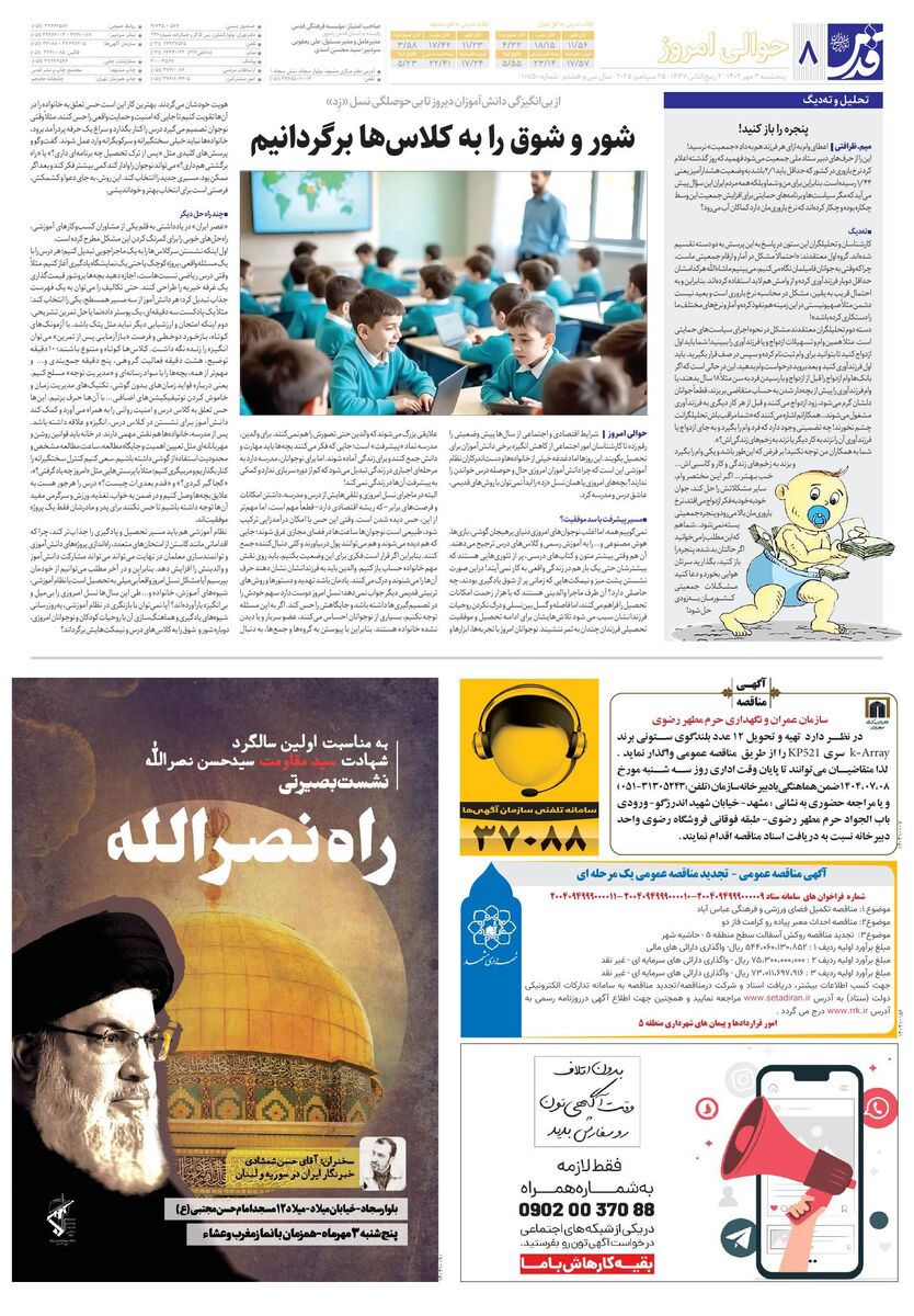 10750 - روزنامه قدس شماره ۱۰۷۵۰ - ۱۴۰۴-۰۷-۰۳