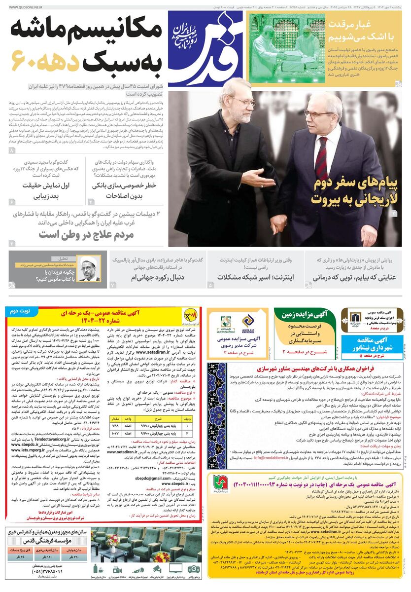 10752 - روزنامه قدس شماره ۱۰۷۵۲ - ۱۴۰۴-۰۷-۰۶