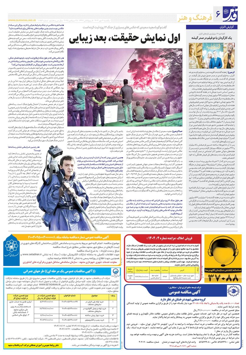 10752 - روزنامه قدس شماره ۱۰۷۵۲ - ۱۴۰۴-۰۷-۰۶