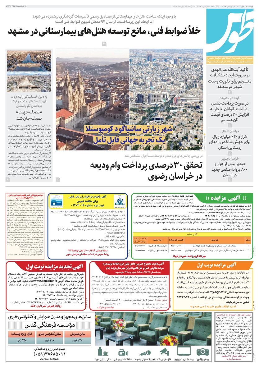 10755 - روزنامه قدس شماره ۱۰۷۵۵ - ۱۴۰۴-۰۷-۰۹