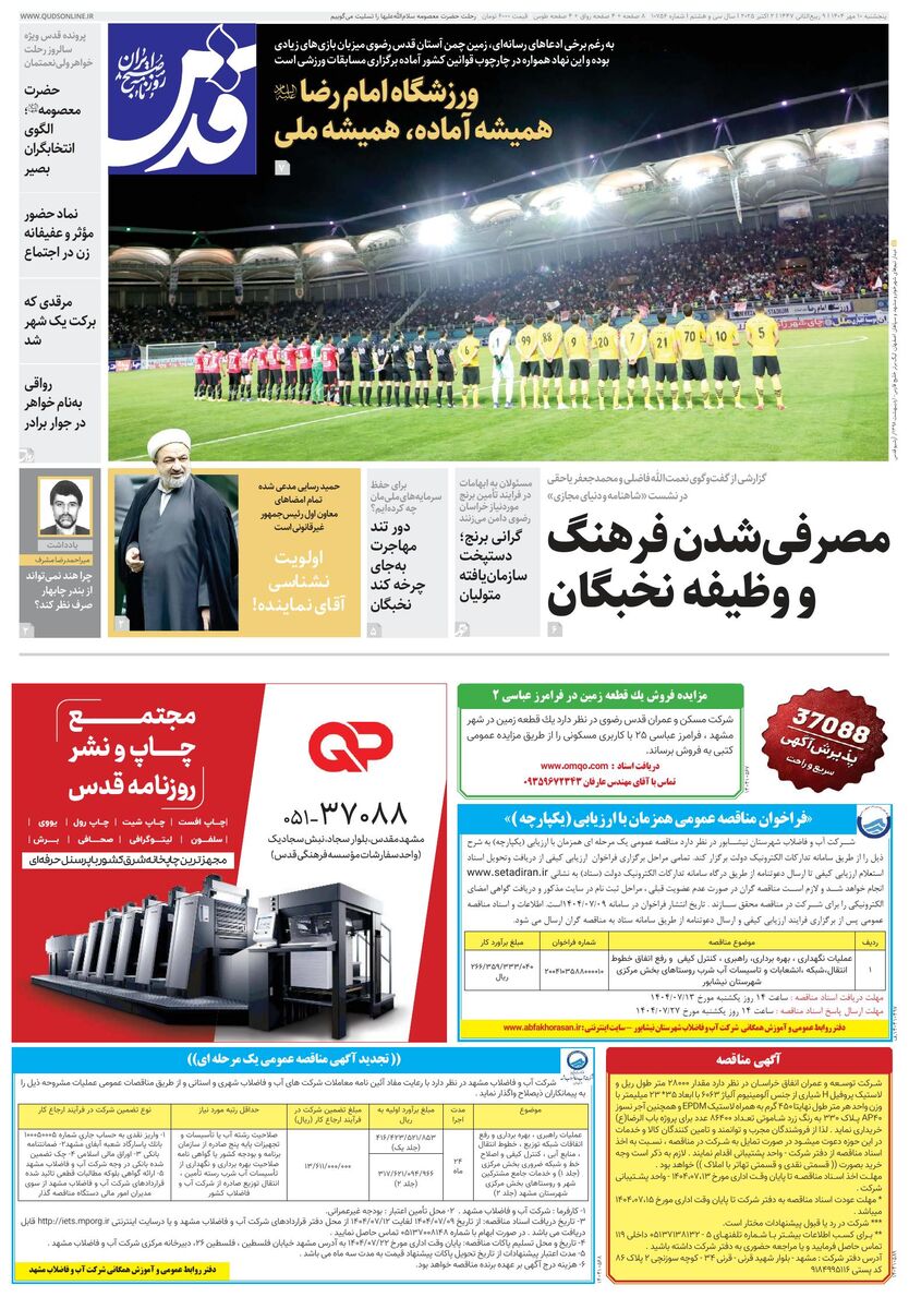 10756 - روزنامه قدس شماره ۱۰۷۵۶ - ۱۴۰۴-۰۷-۱۰