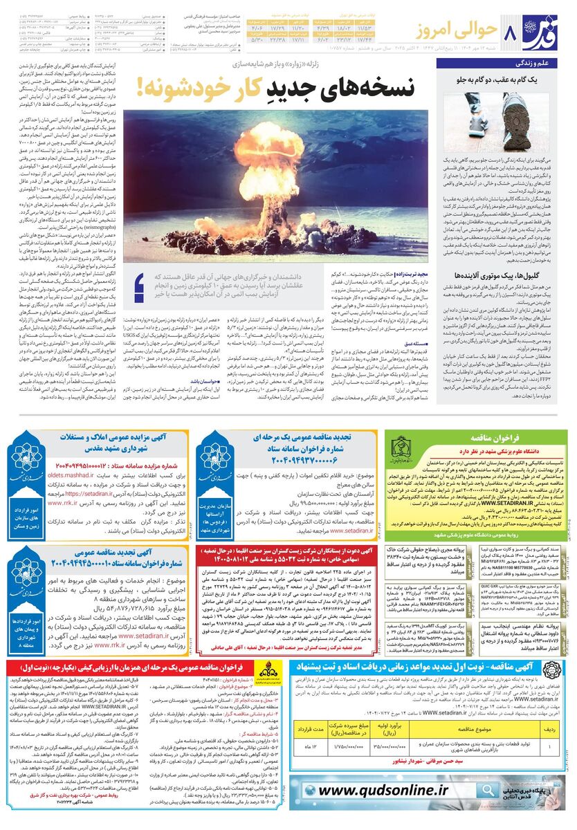 10757 - روزنامه قدس شماره ۱۰۷۵۷ - ۱۴۰۴-۰۷-۱۲