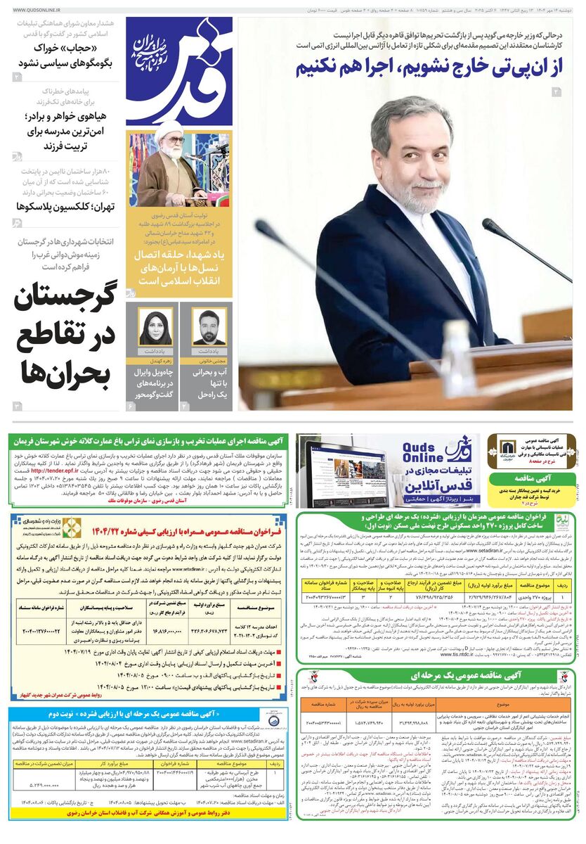 10759 - روزنامه قدس شماره ۱۰۷۵۹ - ۱۴۰۴-۰۷-۱۴