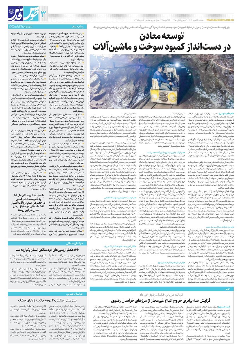 10759 - روزنامه قدس شماره ۱۰۷۵۹ - ۱۴۰۴-۰۷-۱۴