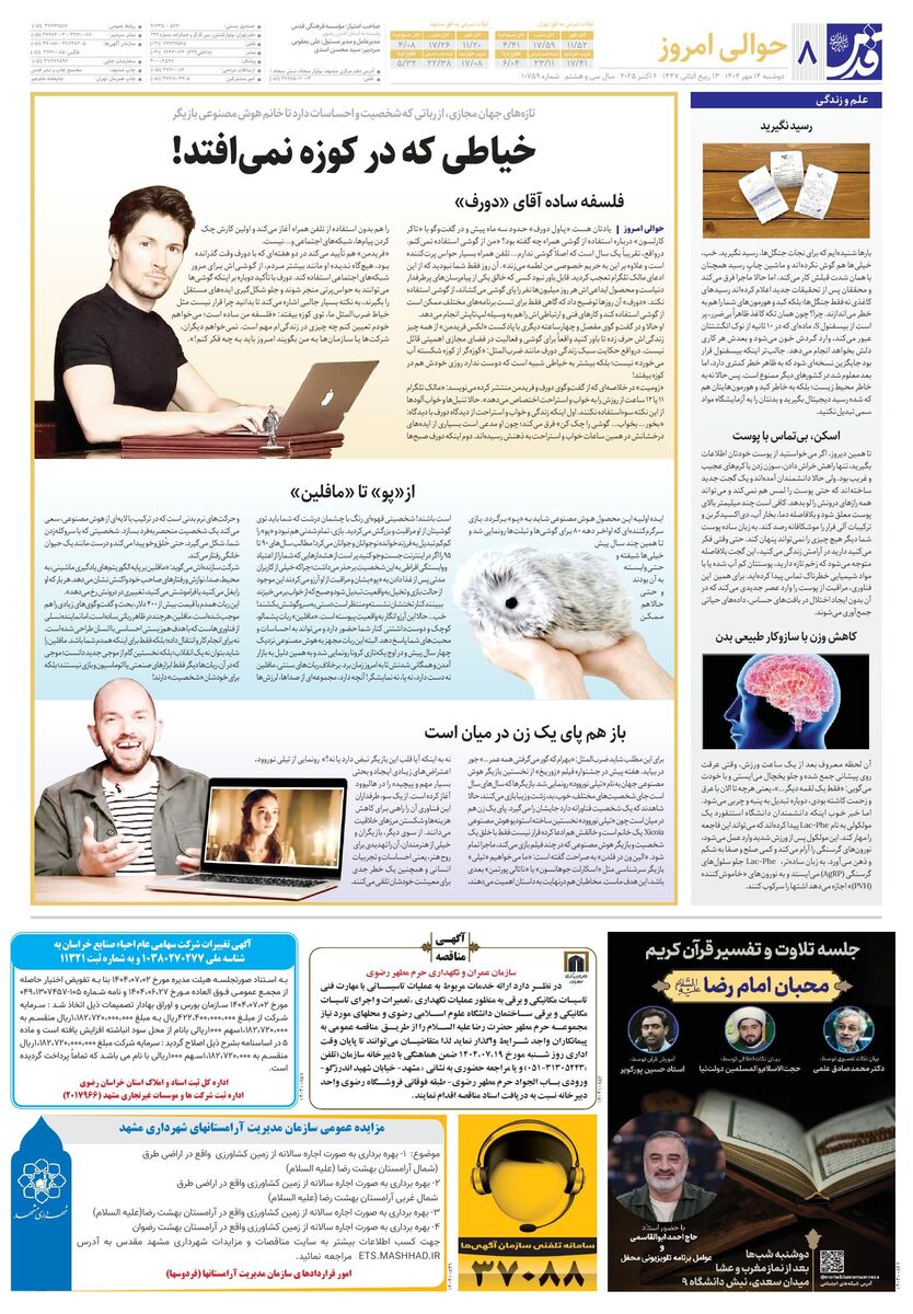 10759 - روزنامه قدس شماره ۱۰۷۵۹ - ۱۴۰۴-۰۷-۱۴