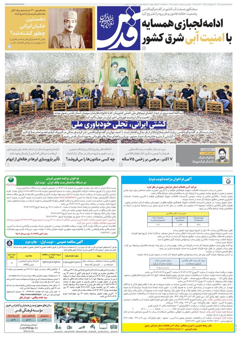 10760 - روزنامه قدس شماره ۱۰۷۶۰ - ۱۴۰۴-۰۷-۱۵
