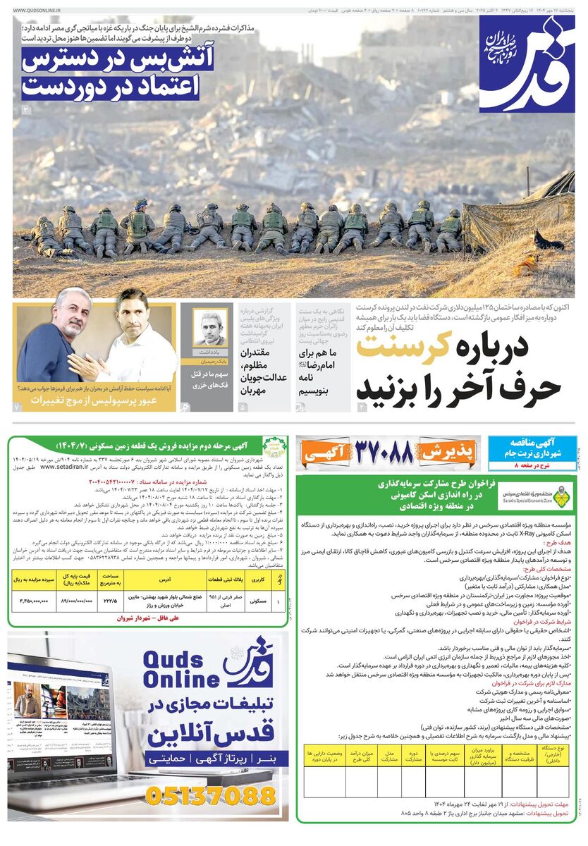 10762 - روزنامه قدس شماره ۱۰۷۶۲ - ۱۴۰۴-۰۷-۱۷