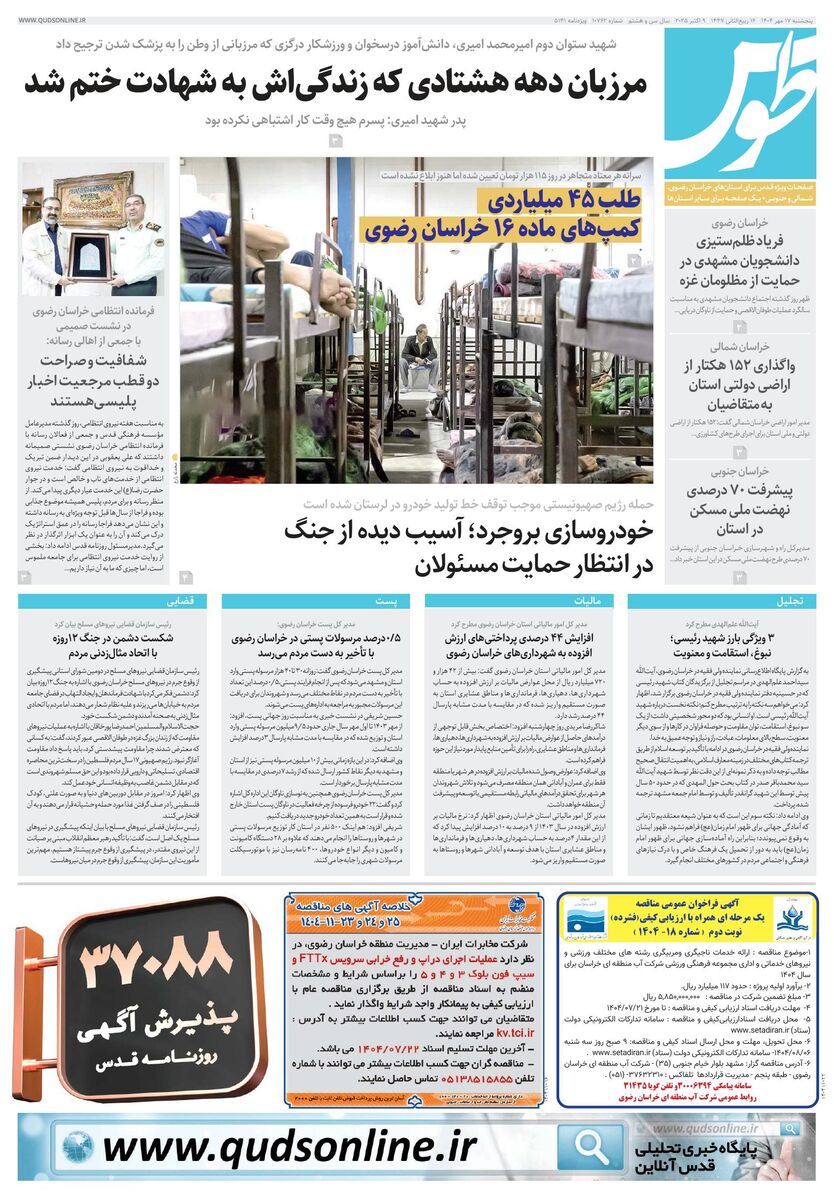10762 - روزنامه قدس شماره ۱۰۷۶۲ - ۱۴۰۴-۰۷-۱۷