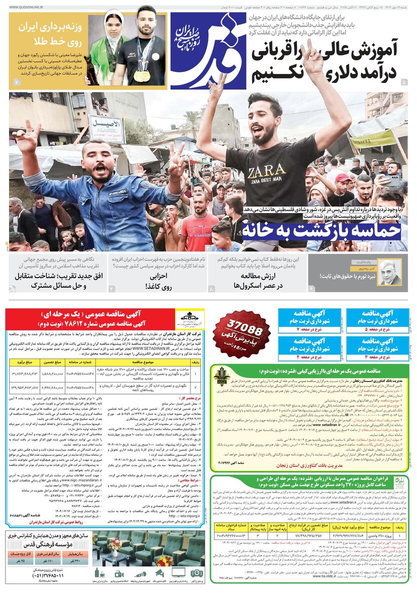 10763 - روزنامه قدس شماره ۱۰۷۶۳ - ۱۴۰۴-۰۷-۱۹