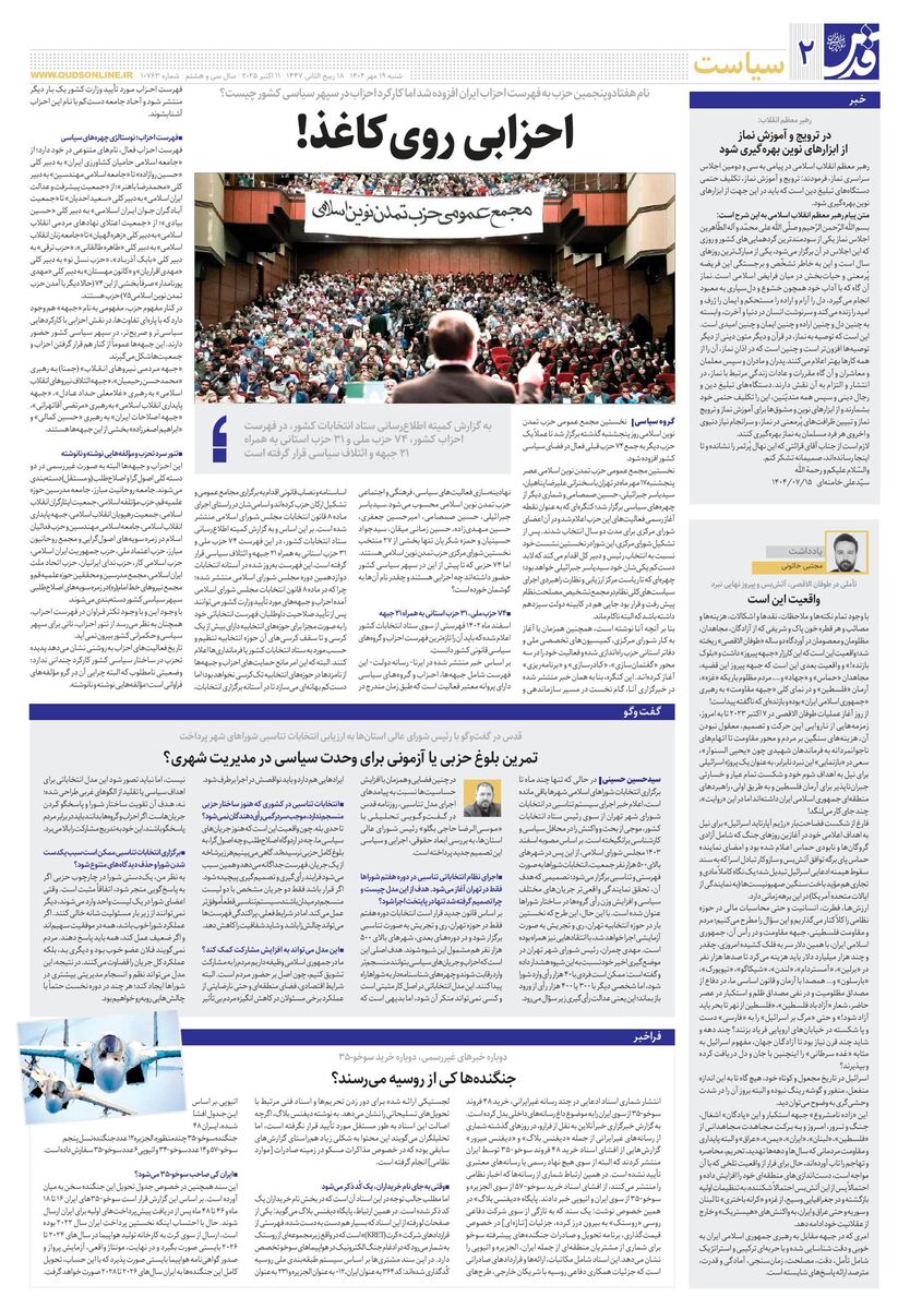 10763 - روزنامه قدس شماره ۱۰۷۶۳ - ۱۴۰۴-۰۷-۱۹