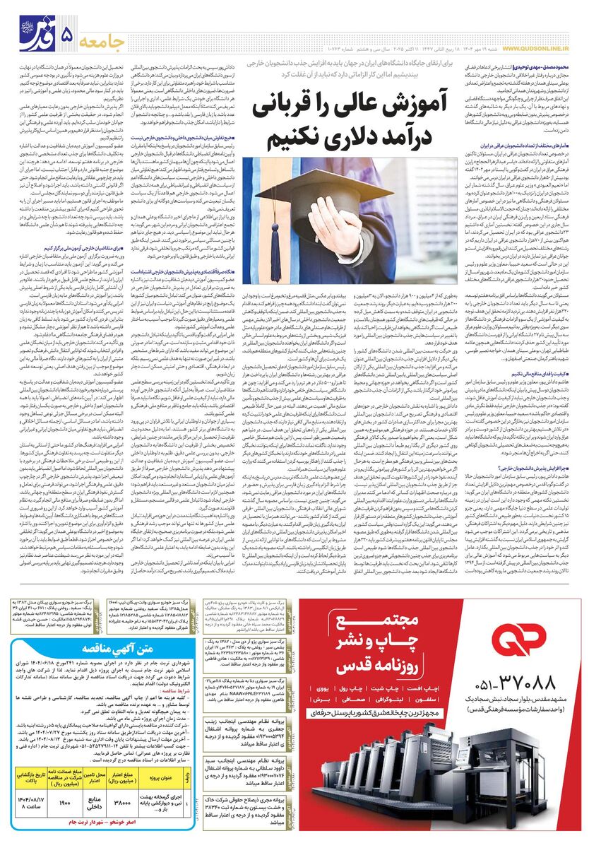 10763 - روزنامه قدس شماره ۱۰۷۶۳ - ۱۴۰۴-۰۷-۱۹