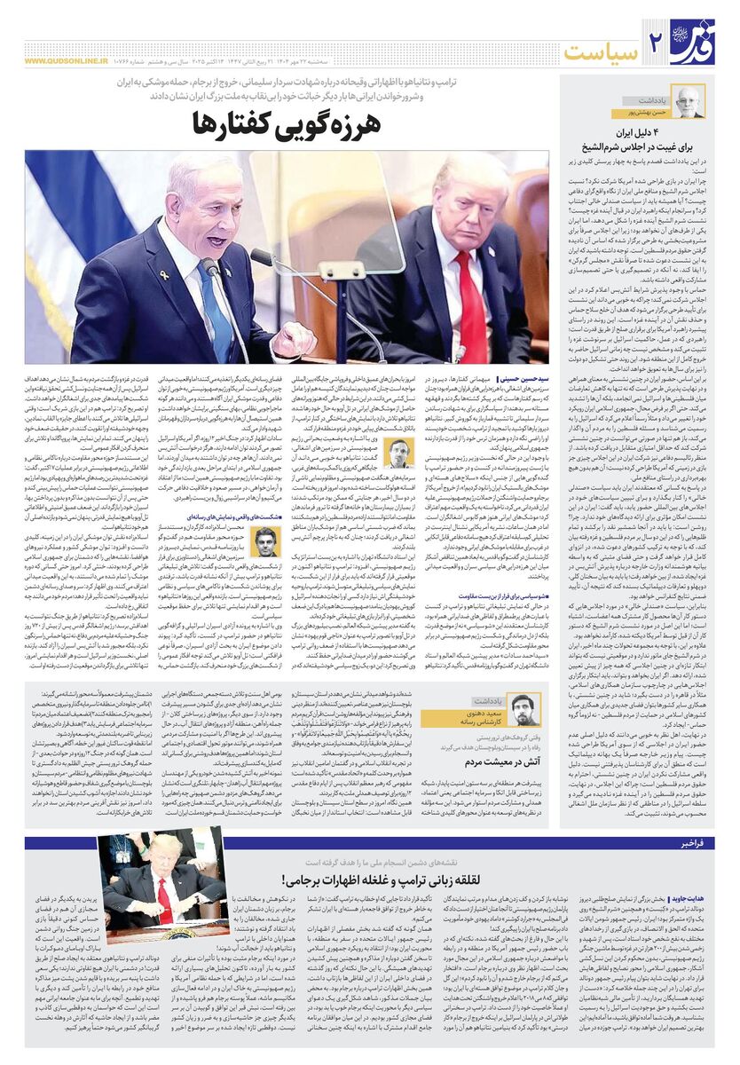 10766 - روزنامه قدس شماره ۱۰۷۶۶ - ۱۴۰۴-۰۷-۲۲