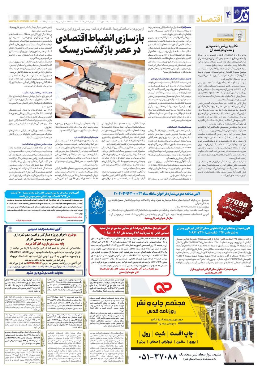 10766 - روزنامه قدس شماره ۱۰۷۶۶ - ۱۴۰۴-۰۷-۲۲