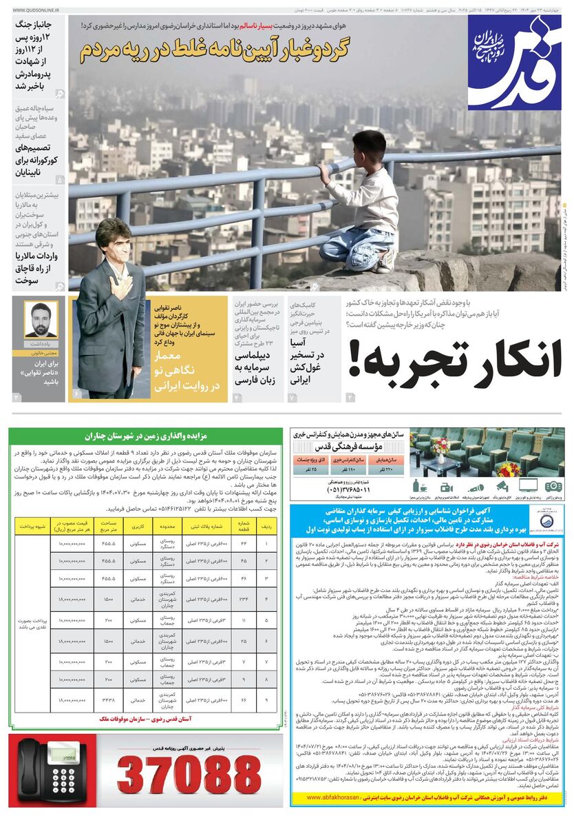 10767 - روزنامه قدس شماره ۱۰۷۶۷ - ۱۴۰۴-۰۷-۲۳