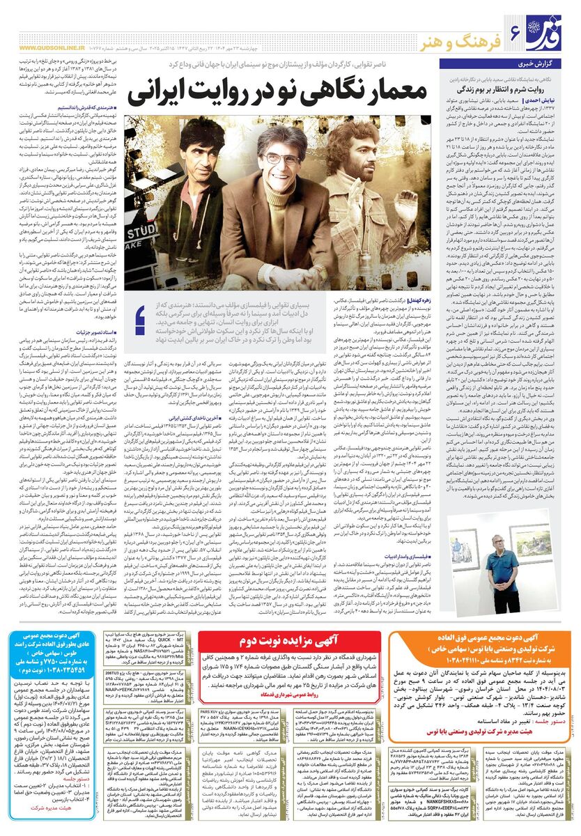 10767 - روزنامه قدس شماره ۱۰۷۶۷ - ۱۴۰۴-۰۷-۲۳