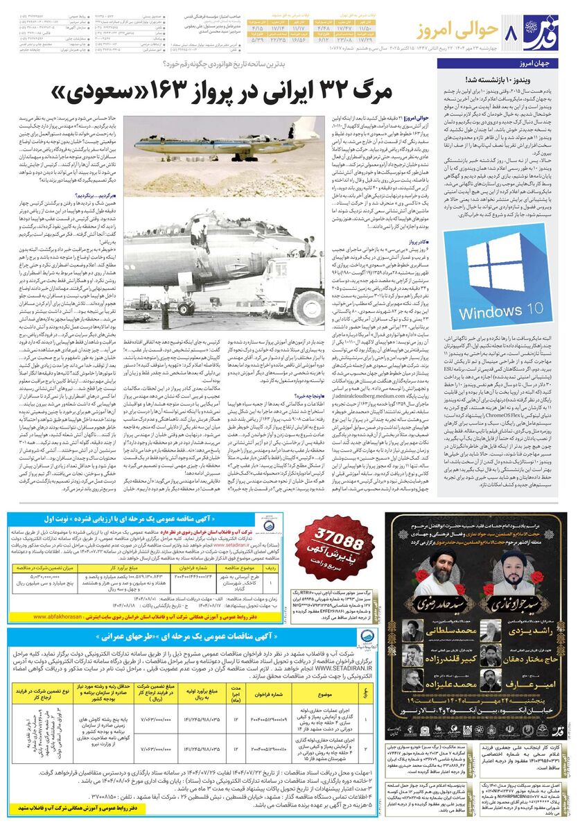 10767 - روزنامه قدس شماره ۱۰۷۶۷ - ۱۴۰۴-۰۷-۲۳