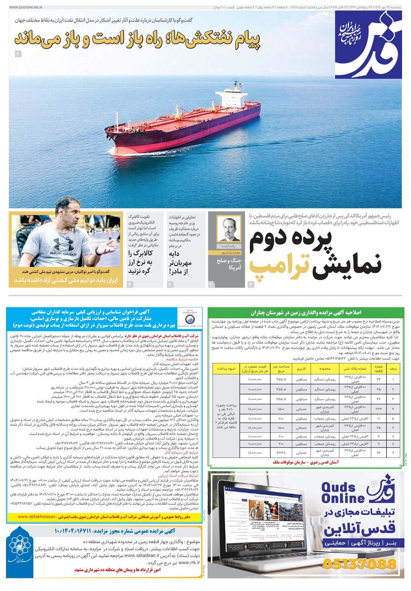 10768 - روزنامه قدس شماره ۱۰۷۶۸ - ۱۴۰۴-۰۷-۲۴