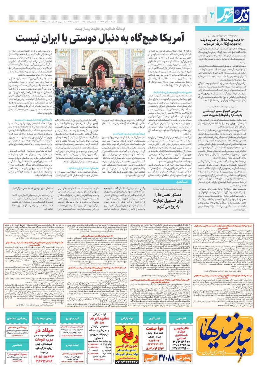 10781 - روزنامه قدس شماره ۱۰۷۸۱ - ۱۴۰۴-۰۸-۱۰