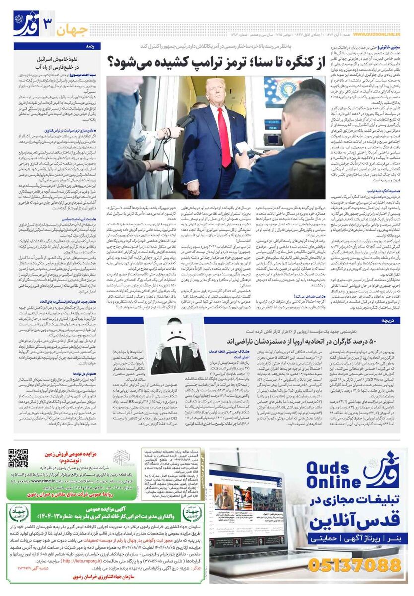 10781 - روزنامه قدس شماره ۱۰۷۸۱ - ۱۴۰۴-۰۸-۱۰