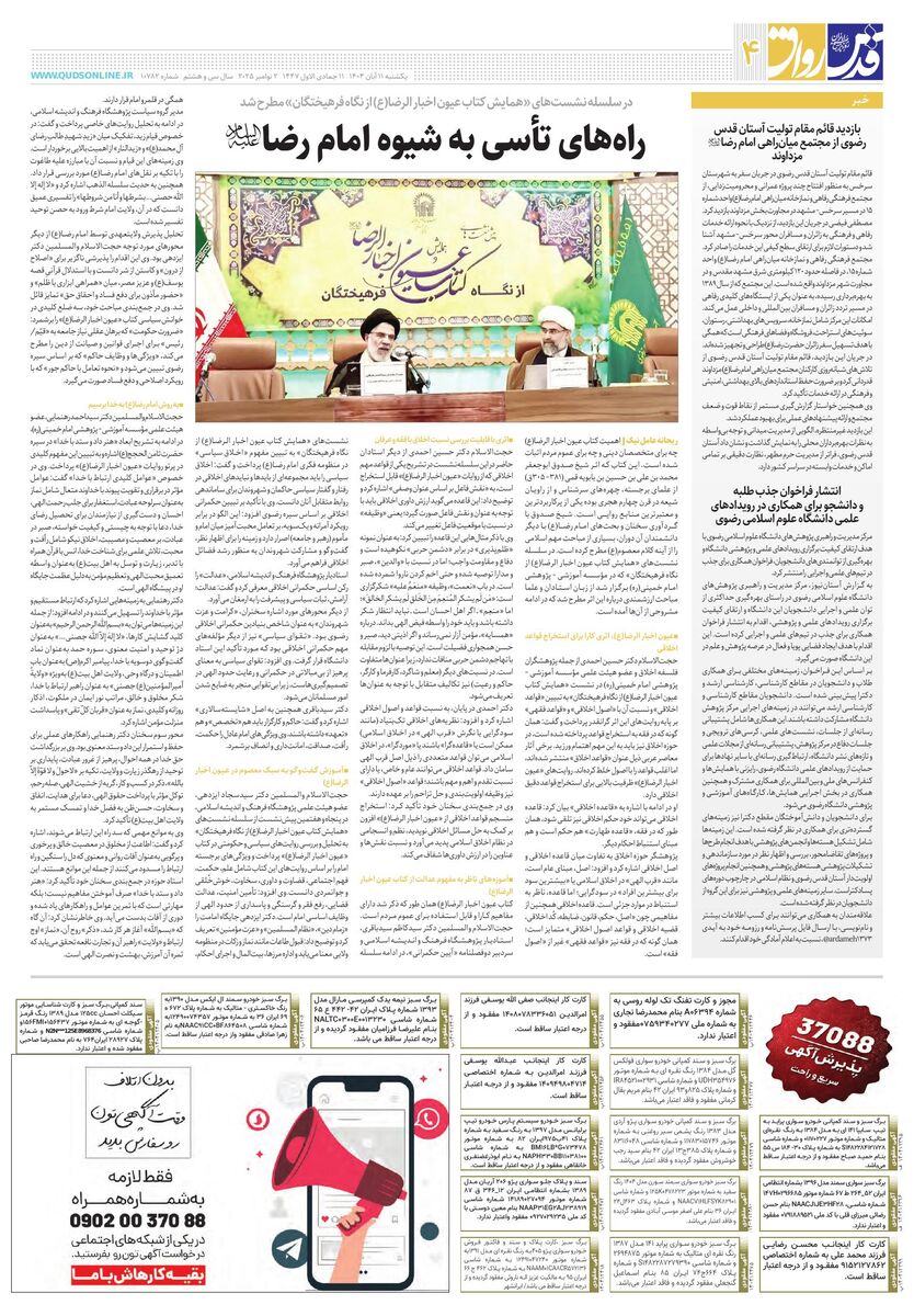 10782 - روزنامه قدس شماره ۱۰۷۸۲ - ۱۴۰۴-۰۸-۱۱