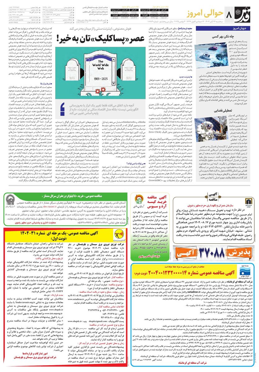 10784 - روزنامه قدس شماره ۱۰۷۸۴ - ۱۴۰۴-۰۸-۱۳